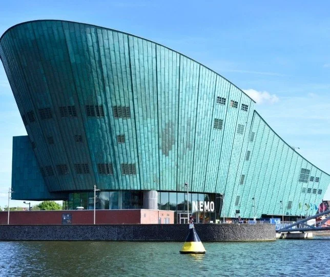 NEMO Science Museum: Het iconische groene gebouw boven de IJtunnel. Een interactief museum voor wetenschap en technologie, met een dakterras dat een van de beste uitzichten over de stad biedt.